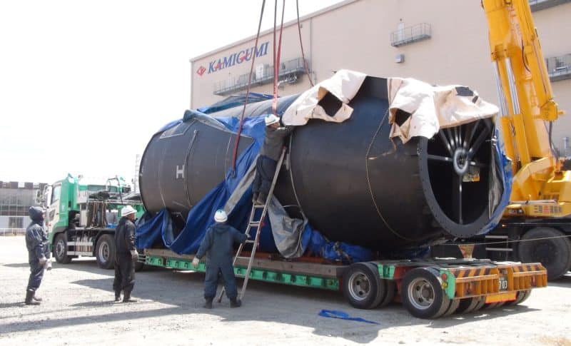 船からクレーンで卸した「風力発電部材【タワー部(直径4.7M/約81トン)】」を運搬【低床トレーラー…