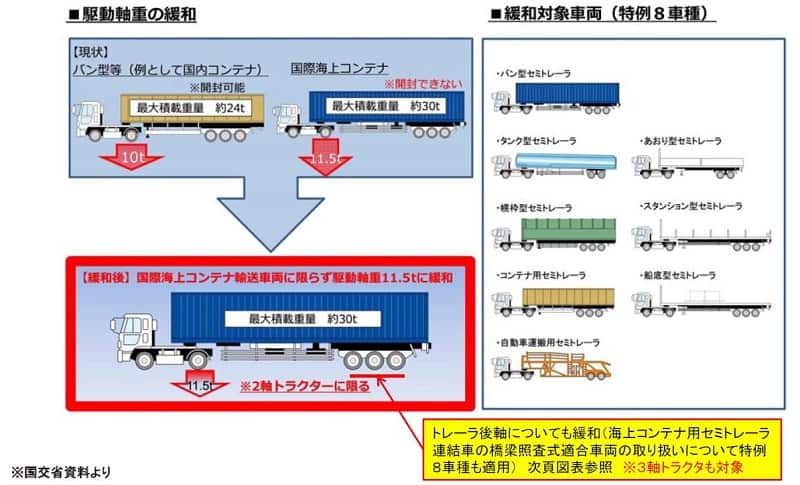 その一般的制限値の特例として上記画像のトレーラー8車種が定めれれています。