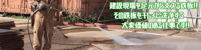 仕事の内容 | 自社レンタル用敷鉄板を高圧洗浄機を使用しての曲がり修理、清掃などをしていただきます。 **急募** |