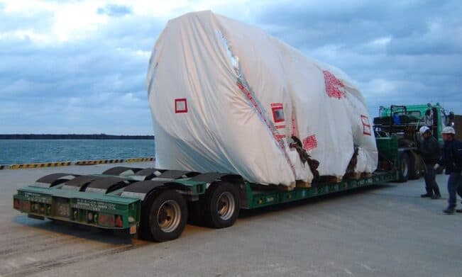 長さ13m、42t精密機械 輸送【伸縮舵切り50t低床トレーラー】/東北急送 株式会社